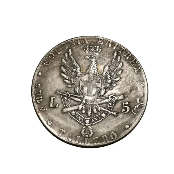 سکه ۵ ریالی دوران استعمار ایتالیا در اریتره، سال ۱۸۹۱ میلادی