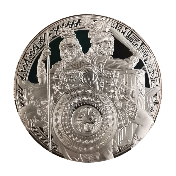 سکه خدایان باستان آرس و مارس، ۵ دلار نیوئه ۲۰۲۱ این سکه بخشی از مجموعه «خدایان باستان» است و به آرس، خدای بزرگ یونانی که با جنگ و خشونت مرتبط بود، و به مارس، پدر رموس و رومولوس، تقدیم شده است.